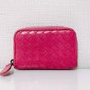 ボッテガヴェネタメッシュミニコインケースカード入れピンクラウンドファスナー財布BOTTEGAVENETAミニウォレット