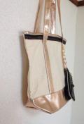 ピンクメタリックゴールドの2トーンショルダーバッグです♪