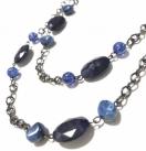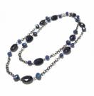 ロングネックレス◎ガンメタチェーン&ネイビー大パーツ◎青系