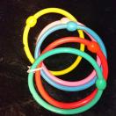 ・輪投げもカラフル!ビニール製で、軽くて丈夫、当たってもあまり痛くないビニール製で、お子さまにも優しいです☆