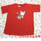 ◆人気の猫イラストプリントTシャツ◆猫Tシャツ かわいいイラスト 見返り大目玉ネコ 赤L