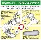 散布の後、靴を履くと白いパウダーが足の裏や靴下・ストッキングに多少ついきますが、パウダーが靴の内側素材に浸透していきますので、どんどん白っぽさは減っていきます。