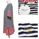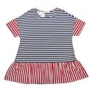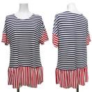 トリコカラーのボーダーとフリルが大人可愛いブルーガールのカットソー。