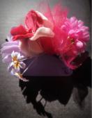 大振りのお花に、チュールや様々な素材のお花などあしらわれており、立体的でとても華やかなデザインです!