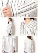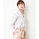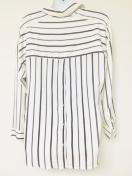 INGNIイング即完売大人気白黒ホワイトブラックストライプとろみシャツドロップショルダー抜き襟ヘムボタンback釦Peツイルスキッパー長袖シャツ