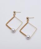 ツイストされたワイヤー変化がアクセントになったスクエアフープピアス。