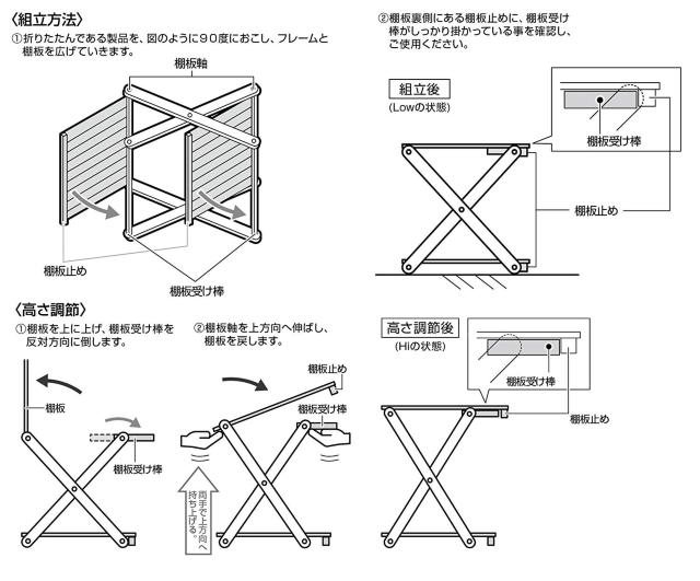 【サイズ(約)】幅600×奥行300×高さLow305・Hi340mm 【収納サイズ(約)】600×400×厚さ60mm