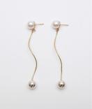パールと人気のメタルボールをミックスさせた女性っぽっくもモードにもお使い頂けるピアスです