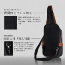 背面にメッシュ加工を採用することにより一般的なボディバッグよりも通気性が良くなっており、