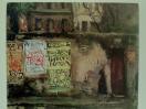 佐伯の風景画にしばしば見られる、英語か仏語か知りませんが、文字の羅列、特に広告の文字が多い絵、下地に太い描線があり、その上に細筆で文字が描かれている絵画、あれは佐伯の奥さん(離婚しています)が画商の企てにより加筆したことが判明しています。よく見ると、かなり違和感を感じると思います。この細かい描写が元奥さんの加筆ですが、全部の文字では無いですよ。元となる文字を佐伯が描いていたから、画才のあった元奥さんが、画商に誘発され加筆した訳で。