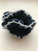 コットン糸でボリュームいっぱいのシュシュを編みました。