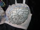 ライトなぺールピンク系にブラック刺繍の花柄レース使いブラトップ部分にブルーのリボンライン付き、サイズ アンダーバスト70 バスト88 ヒップ87〜95 素材 ポリエステル ナイロン ポリウレタン その他