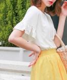 フリルスリーブトップス フリル袖シンプルTシャツ