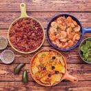 ホームパーティーなどでも大活躍。カラフルなスキレットで料理を並べておしゃれに演出できます。