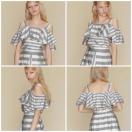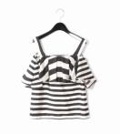 GRACECONTINENTALシャツブラウスグレースコンチネンタルボーダーフリルトップスオフショルダーオープンショルダーブラックグレーホワイト黒白