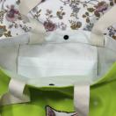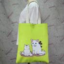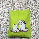 ◆猫大好き◆ねこ柄トートバッグ リネン地黄緑 かわいい親子猫 レディース BA07