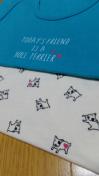 鮮やかな水色にピンクのハート柄と白に犬柄とハートが、かわいい4枚セットの下着(インナー)です。
