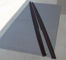 PP製 プラスチックの一種で軽量丈夫です。ラバーなどのような素材ではなく硬めですので加工には鋸などをご使用ください。