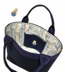 外側はシンプルなデニムにし、内側を爽やかで上品な花柄にしました〓。内ポケットには〓マトリョーシカ〓のアップリケを付けて、持ってぃる本人だけが気分がほっこりするデザインにしました〓。表地と裏地の間に接着綿を挟んでいますので、少しフンワリしています〓。。