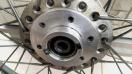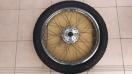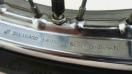 GS400 フロントスポークホイール&タイヤ セットの出品です。最初に自己紹介を必ず読んで下さい。実働車から取り外しストックしていました。18インチ、ダブルディスク対応です。タイヤはミシュランで7部山以上あります。個人的ですが劣化等無く、まだまだ問題無く使用可能だと思います。個人的ですが全体的に目立つ不具合等無く良い物だと思います。個人的目視ですが歪み等ありません。リムに目立つキズ、錆び等ありません。スポークに折れ、曲り等ありません。全てのネジ穴に不具合ありません。ベアリングにガタ、固着等ありません。GT380やGS系、GT系、GSX系などにも取り付け可能だと思います。問題無く取り付け使用できると思います。古い中古の為、細かなキズ、錆び、使用感等あります。落札後は必ずノークレーム、ノーリターン、ノーキャンセルです。画像の物が全てです。画像で判断お願いします。画像で判らない事は質問お願いします。送料は適当です。発送は基本的に送料着払い発送です。締切日時