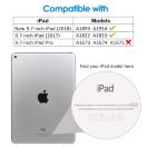 iPad 9.7インチ (2018/2017 モデル) のために専門設計。対応モデル:A1822/A1823/A1893/A1954。iPad Pro 9.7とほかの機種には対応できません。デバイス裏面のモデルを確認ください。