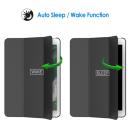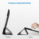 マグネット内蔵、オートスリープとオートウェイクアップ機能が付きます。三つ折りフロントカバーにより、視聴とタイピングに合わせた2通りのスタンド角度を調整出来ます。