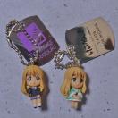 ☆タカラトミーアーツのガシャポンの「けいおん!リトルマスコット1」の琴吹紬A(制服Ver.)と「けいおん!リトルマスコット2時間目」の琴吹紬B(ライブ衣装Ver.)です。3センチくらいの大きさです。