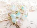 クリアとミルキーホワイトのナツメ型ガラスビーズです。