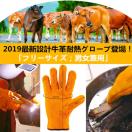 【耐熱手袋本体】マジック式牛革手袋:素材:純牛革(表)+100%綿(裏);サイズ:フリー(長約24-25cm 幅約13-14cm);適用:男女兼用+オールシーズン。
