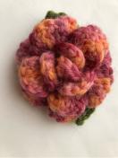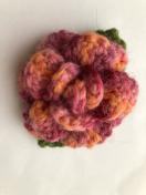 ウール100%の毛糸で薔薇を編んで、ブローチを作りました。
