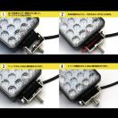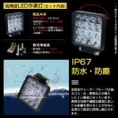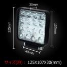 LED POWER:48W(16個* 3WハイパワーLED) 防水レベル:IP67 発光色:ホワイト ルーメン:3360LM 電圧:DC10V-30V 照射角:狭角タイプ(光角度:30°) サイズ:(約)125X107X30(mm) 内容:ランプ×2個、取り付けネジ×2式