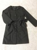 襟なしで襟元がクシュっとしたデザインなので、そのまま着ても、マフラー等使っても、すっきり着られます。