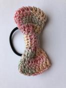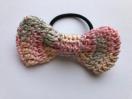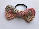 レース糸でリボンを編んでヘアゴムを作りました。お色違いも出品しています。