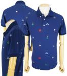商品説明クラブやフラッグ、ティーアップなどのゴルフアイコン刺繍がいっぱいのカノコ半袖ポロシャツ。ラウンドが楽しくなるお洒落な一枚。ソフトな風合いと、速乾性に優れ着心地も快適。