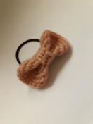 お肌に優しいウール100%の毛糸でリボンのヘアゴムを作りました。