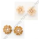 フェイクレザー素材のフラワーモチーフが、耳元を大人かわいく飾るイヤリング♪