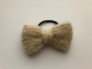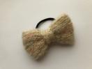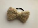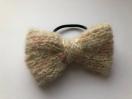 モヘア入り毛糸でリボンを編んでヘアゴムを作りました。