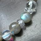 *6ミリ玉 ルナフラッシュ…ガラスとガラスの間にオーロラフィルムを挟んで加工 した人工石(ガラス)です。 魅入ってしまうような美しい輝きです。