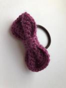 お肌に優しいウール100%の毛糸でリボンを編んでヘアゴムを作りました。