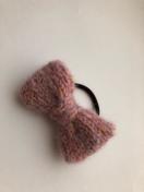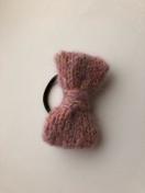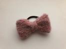 モヘア入り毛糸でリボンを編んでヘアゴムを作りました。