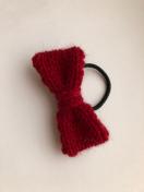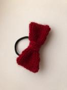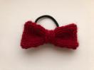 ウール100%の毛糸でリボンを編んでヘアゴムを作りました。