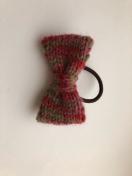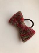 ウール100%の毛糸でリボンを編んでヘアゴムを作りました。