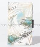 繊細に描かれた美しい配色の孔雀の羽が鮮やかに広がるフリップタイプのiPhoneケース。