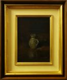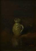 1973年の日動画廊個展出品の充実期作で、漆黒の中、艶やかな益子の瓶が良く映える作品です。