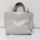 LOWELLグレー灰色型押しミニハンドバッグショルダーバッグ3way雨の日okクロコダイル柄ゴールド金具