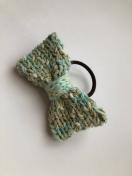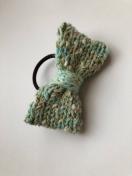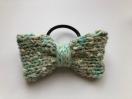 引き揃え糸でリボンを編んでヘアゴムを作りました。