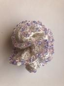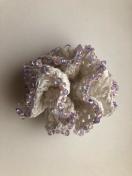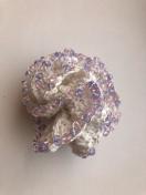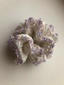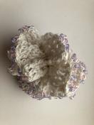 ウォッシャブルコットン(ハマナカ)でボリュームシュシュを編みました。