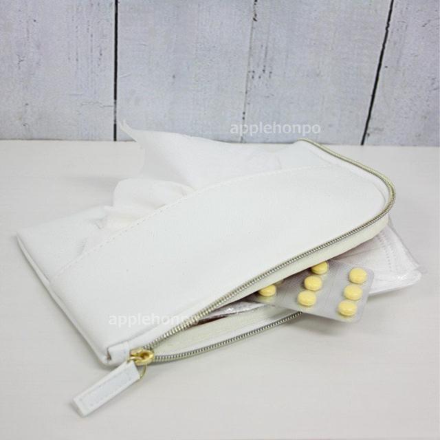 ティッシュやマスクを入れてもOK。ひとつあると便利な変化形ポーチ。
