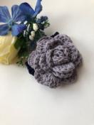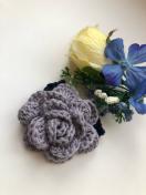 ウォッシャブルコットン(ハマナカ)で薔薇を編んで、ブローチを作りました。