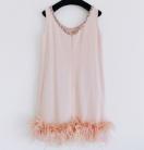 グレースコンチネンタルグレースクラスピンクベージュファーフェザービジューパールワンピースドレス結婚式披露宴お食事会パーティー36GracecontinentalGraceclass